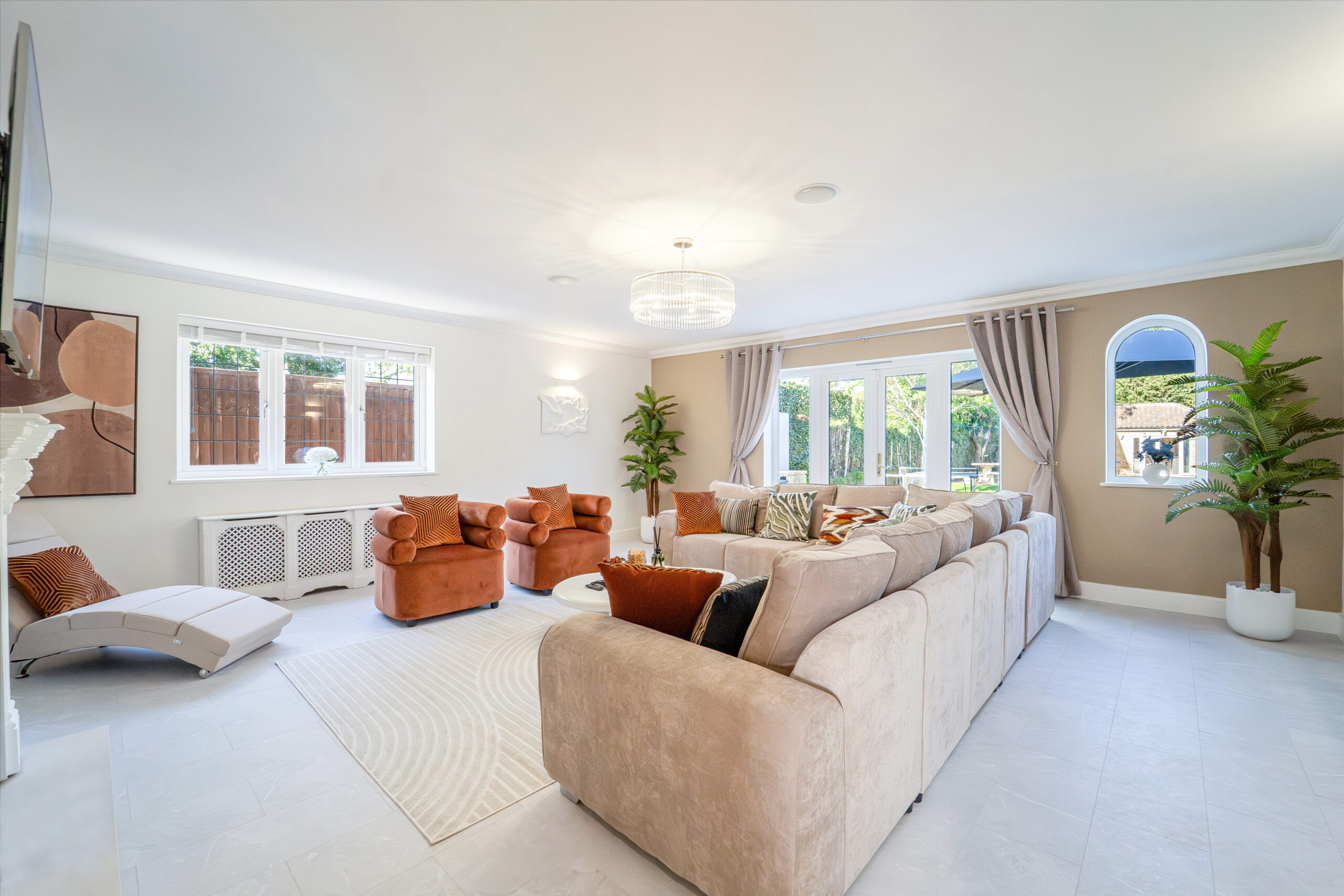 Located in the exclusive Emerson Park area of North East London/Essex, this 5,300 sq ft gated villa offers resort-style living with six bedrooms and five bathrooms, heated pool, jacuzzi, pool house bar, outdoor BBQ kitchen, games room and cinema.